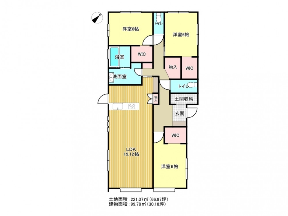 3LDK+3WICのゆったりした平屋の新築戸建て!